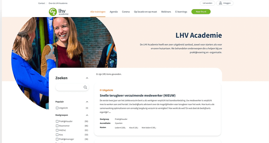 De LHV beschikte over een grote hoeveelheid content, producten en diensten, verdeeld over meerdere omgevingen zoals de hoofdsite, de academie en ledenplatforms. De uitdaging was om deze informatie: